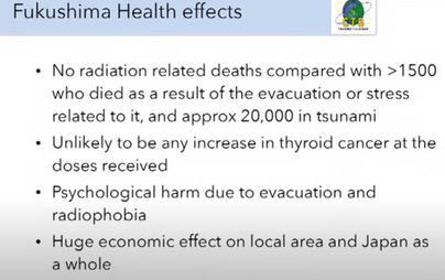 Many misconceptions circulate around the health effects nuclear fallout has caused the public to endure. Nuclear energy uses uranium, which emits ionizing radiation both naturally and through the nuclear fission process. Exposure to ionizing radiation is harmful to human health, although nuclear reactor failures are not the only events that expose us to it. Out of all radiation exposure humans are susceptible to, nuclear discharge and fallout from nuclear disasters and military exercises are responsible for only 0.3%. The majority of our exposure comes from radon gas from the ground (50%), medical (15%), gamma rays from the ground and buildings (13%), cosmic rays (12%), and food (9.5%). In history, around 4,000 people have died as a result of nuclear-related disasters, the majority from being present at the site of the disaster. This number is tragic, regardless of the reason, although many people are misinformed that this number is higher. For all those who were secondarily affected by these incidents and exposed to the radiation in the aftermath, death is not so apparent. Out of the 16,000 predicted to develop thyroid cancer, only 160 are expected to die. There has been no research to indicate that exposure to radiation will increase the risk for any other cancer, affect fertility, cause malformations, or increase infant mortality. In the Fukushima disaster, there were no radiation-related deaths, compared to the hundreds who died from evacuation and stress.